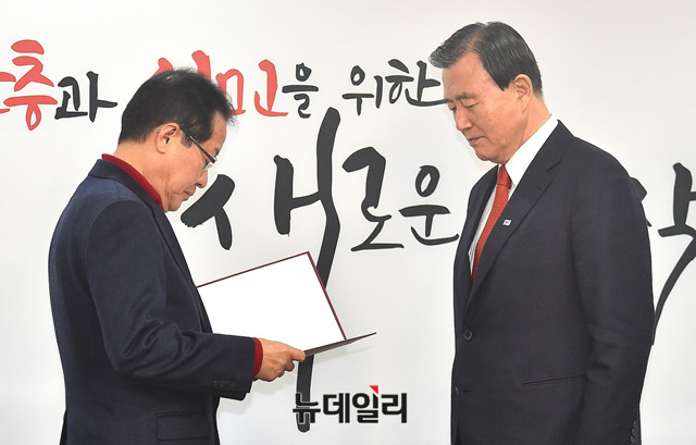 [포토] 임명장 받는 홍문표 자유한국당 공천관리위원장