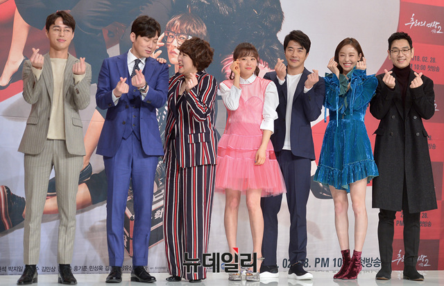 드라마 '추리의여왕 시즌2'의 배우(최강희, 권상우, 이다희, 박병은, 오민석, 김현숙, 김태우)들이 26일 오후 서울 영등포 타임스퀘어에서 열린 제작발표회에 참석해 포토타임을 갖고 있다.