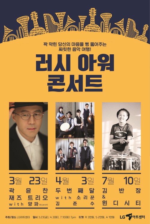 LG아트센터의 '러시 아워 콘서트'가 재즈, 퓨전국악, 레게 장르를 대표하는 뮤지션들과 함께 3월부터 찾아온다.