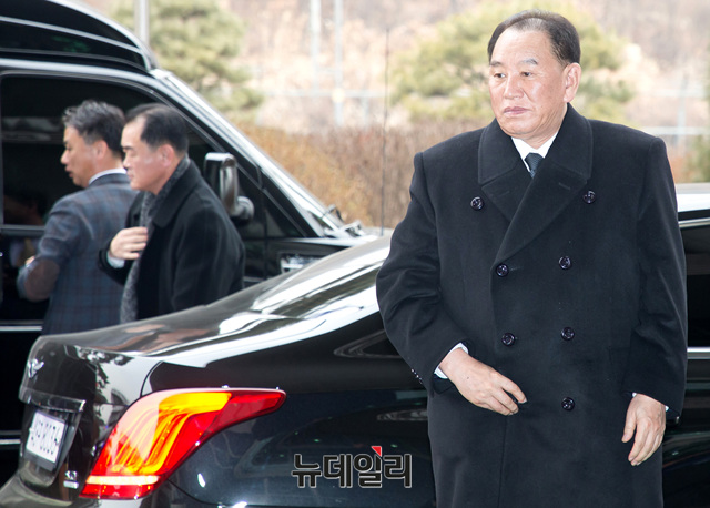 김영철, 리선권은 지난 25일 방남해 평창동계올림픽 폐회식에 참석 후 문재인 대통령, 조명균 통일부 장관, 서훈 국가정보원장 등을 만났다. (사진=공동취재단)