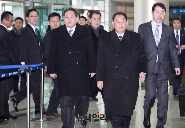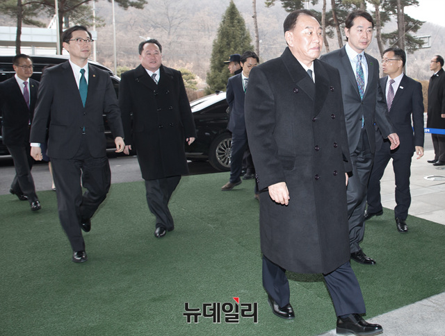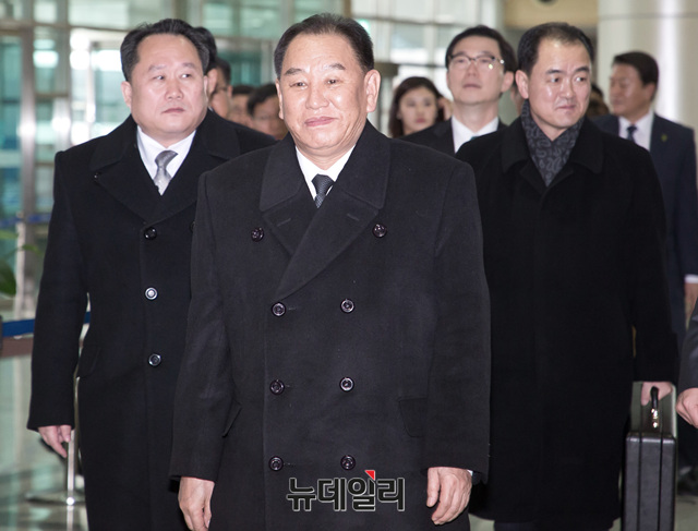 김영철, 리선권은 지난 25일 방남해 평창동계올림픽 폐회식에 참석 후 문재인 대통령, 조명균 통일부 장관, 서훈 국가정보원장 등을 만났다. (사진=공동취재단)