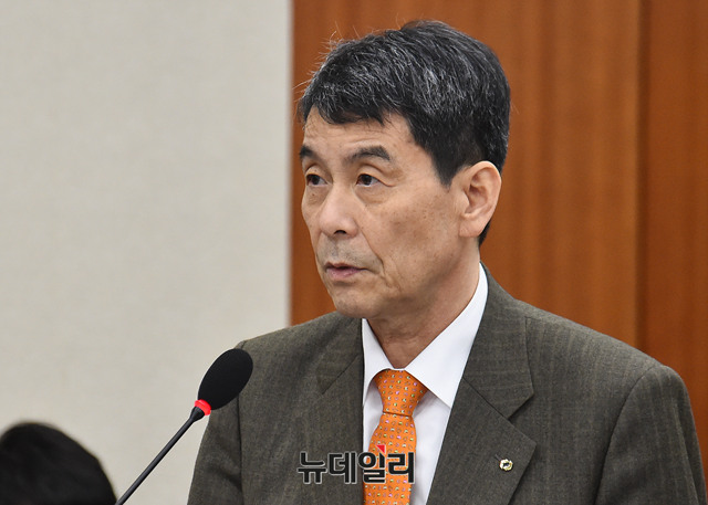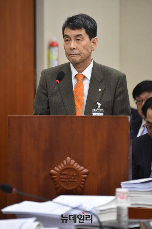 이동걸 KDB산업은행 회장이 27일 오후 국회에서 열린 국회 정무위원회 전체회의에서 의원들의 질의에 답변하고 있다.