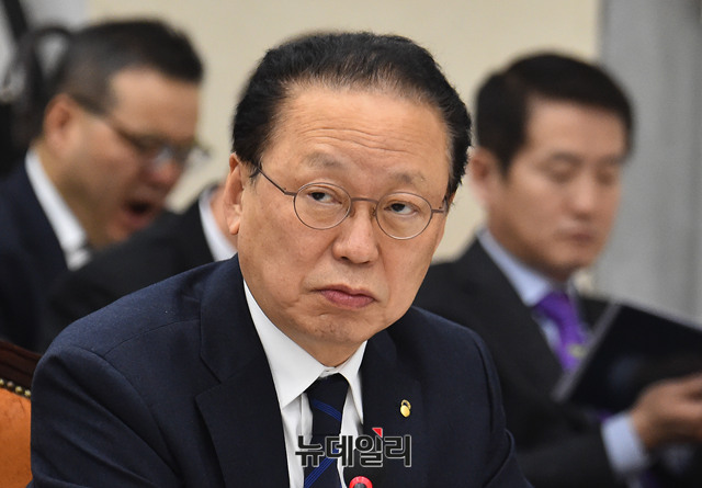 최흥식 금융감독원장이 27일 오후 국회에서 열린 국회 정무위원회 전체회의에서 의원들의 질의에 답변하고 있다.