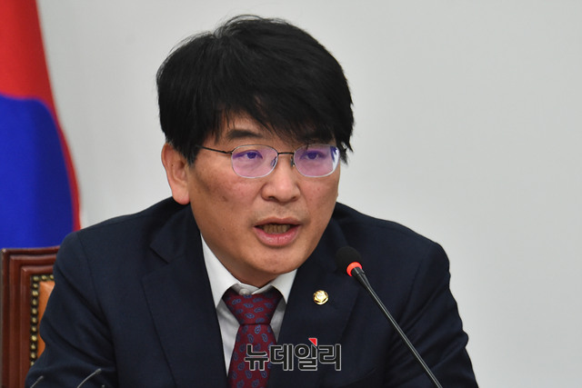 박완주 더불어민주당 의원이 28일 오전 국회에서 열린 최고위원회의에서 모두발언을 하고 있다.
