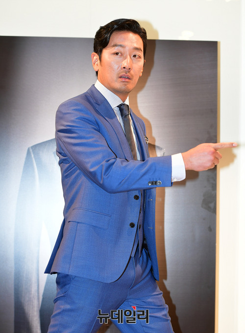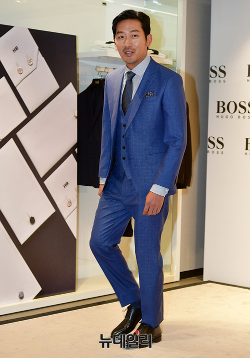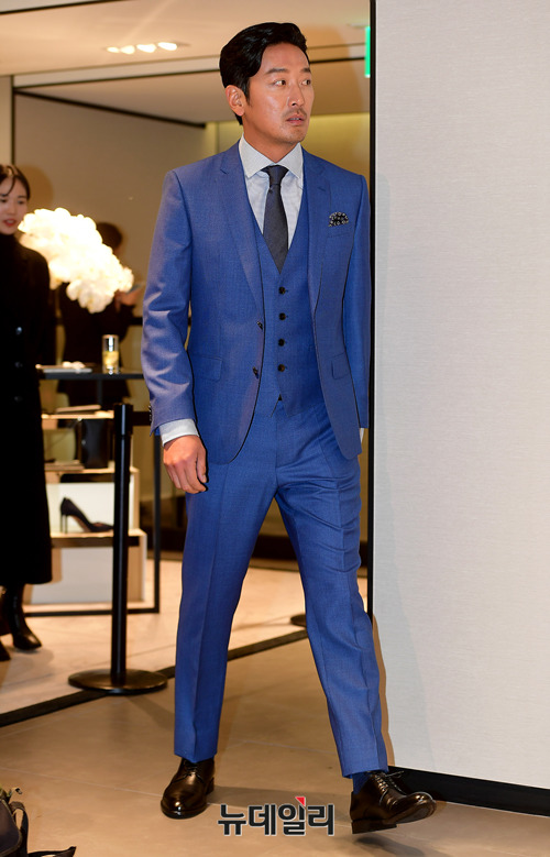 배우 하정우가 28일 오후 서울 강남구 휴고 보스 청담 플래그십 스토어에서 열린 맞춤제작 서비스 런칭 행사에 입장하고 있다.