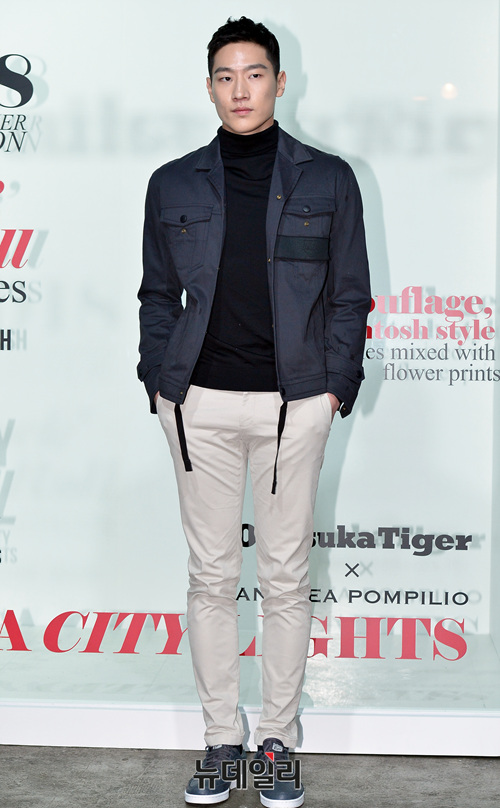 모델 스티브(노상현)가 28일 오후 서울 성동구 레이어57에서 열린 '오니츠카타이거 2018 S/S 컬렉션 프리뷰' 행사에 참석해 포즈를 취하고 있다.