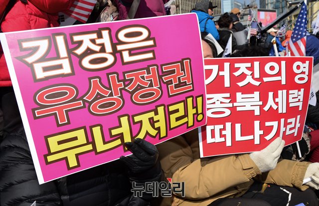 미스바대각성기도성회, 여호사밧기도회 등 종교단체가 주최한 이날 집회에는 시민들이 태극기와 성조기를 흔들었다.