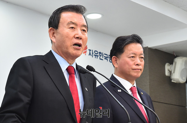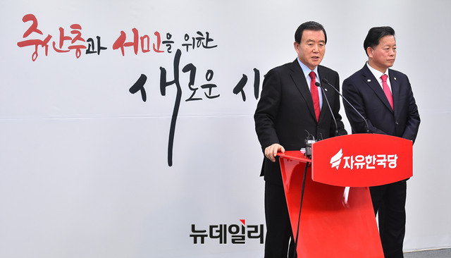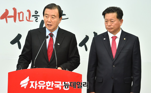 홍문표 자유한국당 공천관리위원장이 5일 오전 서울 여의도 중앙당사에서 기자회견을 갖고 공천심사 과련 기준을 대해 발표하고 있다.