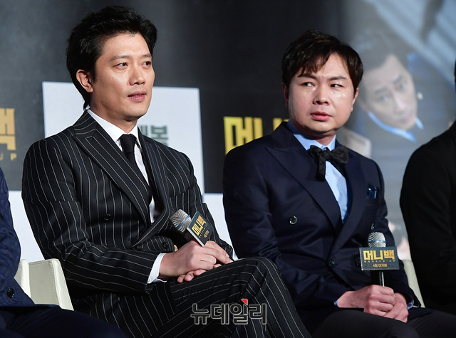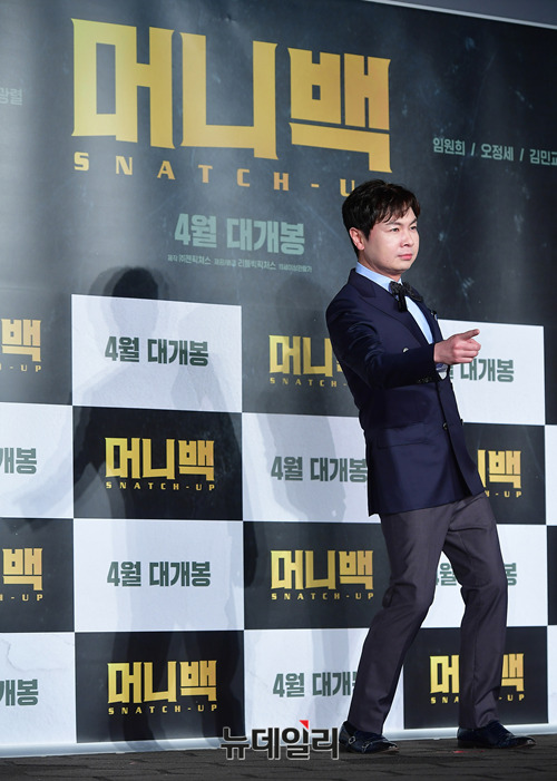 배우 임원희가 5일 오전 서울 광진구 롯데시네마 건대입구에서 열린 영화 '머니백(감독 허준형)' 제작보고회에서 인사말을 하고 있다. 머니백은 돈가방 하나에 엮인 7명의 예측불가 추격전을 다룬 범죄오락 영화로 오는 4월 개봉을 앞두고 있다.