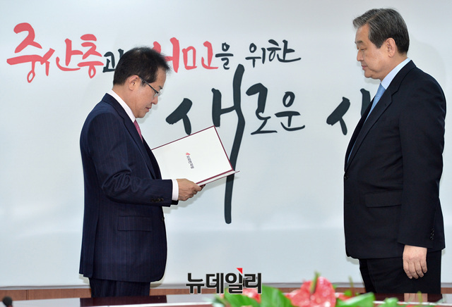 이날 홍 대표는 김무성, 정진석 의원을 각각 핵폐기추진특별위원장, 경제파탄대책대책특별위원장에 임명했다.