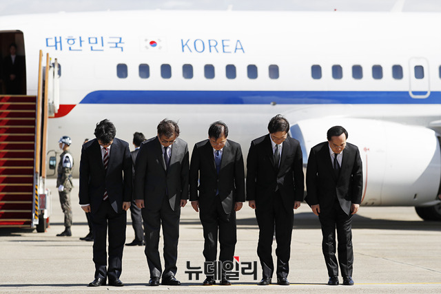 [포토] 특별기로 평양가는 대북특사 대표단