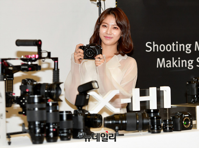 배우 공승연이 6일 오전 서울 종로구 세종문화회관 예인홀에서 열린 후지필름 X-H1 신제품 출시행사에 참석해 포토타임을 갖고 있다. X-H1은 기존 RF형 미러리스 X-PRO와 SLR형 미러리스 X-T에 이어 영상촬영을 특화한 신규 라인업으로 후지필름의 첨단기술과 노하우의 정점을 담았다.