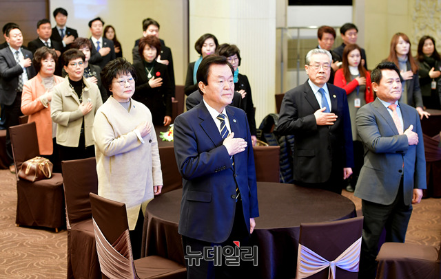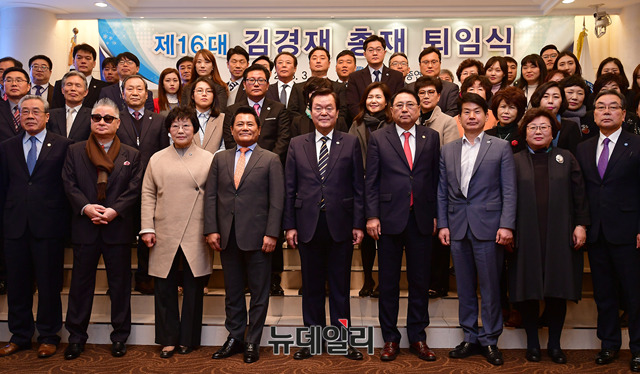 [포토] 퇴임하는 김경재 총재 "자유총연맹 만세"