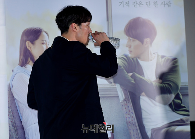 배우 소지섭이 6일 오후 서울 광진구 롯데시네마 건대입구에서 열린 영화 '지금 만나러 갑니다(감독 이장훈)' 언론시사회에서 물을 마시며 자리를 나서고 있다. '지금 만나러 갑니다'는 일본 동명의 소설을 원작으로 세상을 떠난 수아(손예진)가 기억을 잃은 채 우진(소지섭) 앞에 다시 나타나면서 시작되는 이야기 그렸다. 오는 14일 개봉.