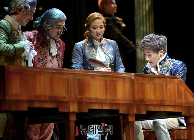 이야기는 궁정 음악가로서 인정받은 음악가 살리에리가 비범한 재능을 지닌 모차르트를 만나면서 시작된다. 연극임에도 6인조의 오케스트라가 등장해 20곡이 넘는 모차르트 음악을 선보이며, 창작 넘버가 추가되기도 했다.독특한 안무가 결합된 움직임을 통해 스토리나 인물의 감정을 전달하는 멀티 캐릭터 작은 바람들, 희랍 비극 속 코러스를 연상시키는 캐릭터 활용 등 이지나 연출 특유의 전위적인 방식의 무대 연출이 돋보인다.뮤지컬 '헤드윅' 이후 처음으로 연극에 도전하는 김재욱은 "전부터 계속 무대 연기를 해보고 싶었는데 이번에 좋은 작품을 만나게 됐다. 시간과 몸을 많이 써야 하는 준비 과정이 쉽지 않았다. 이제부터가 시작이다. 긴장을 늦추지 않고 최선을 다하겠다"며 각오를 전했다.그룹 인피니트의 성규 또한 "처음 하는 연극이라 긴장되고 설레면서 걱정도 됐다. 연습을 하면 할수록 좋은 경험을 하고 있다는 생각이 든다"라며 "저와 모차르트가 닮은 점이 있다면 음악을 굉장히 사랑하고, 음악에 대한 열정이 비슷하다"고 설명했다.연극 '아마데우스'는 조정석·김재욱·성규(모차르트 役), 지현준·한지상·이충주(살리에리 役), 이엘·함연지·김윤지(콘스탄체 베버 役) 등이 출연한다.4월 29일까지 광림아트센터 BBCH홀에서 공연된다.