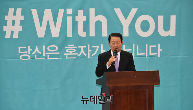 박주선 바른미래당 공동대표가 8일 오전 국회 의원회관에서 3.8 세계 예성의 날을 맞아 열린 '차별과 폭력 없는 미래로' 대회에서 축사 하고 있다.