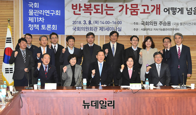 '반복되는 가뭄 어떻게 넘을까' 토론회가 8일 오후 국회 의원회관에서 열린 가운데 토론회를 주최한 주승용 바른미래당 의원 등 참석자들이 기념촬영을 하고 있다.