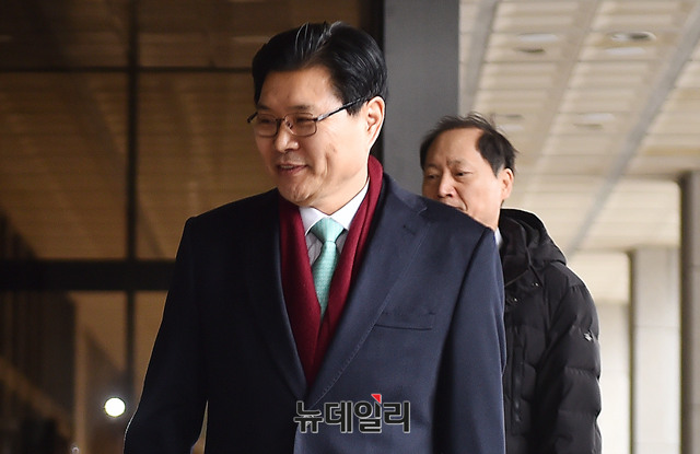 홍문종 자유한국당 의원이 9일 오전 서울 서초구 서울중앙지검에 사학재단을 통한 불법 자금 수수 의혹 관련 피의자로 출석하고 있다.