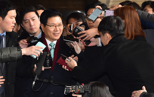[포토] 기자들 질문에 답하는 홍문종 의원