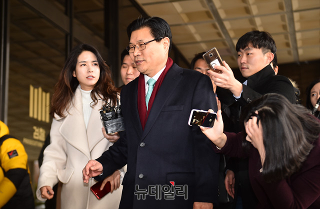 홍문종 자유한국당 의원이 9일 오전 서울 서초구 서울중앙지검에 사학재단을 통한 불법 자금 수수 의혹 관련 피의자로 출석하고 있다.
