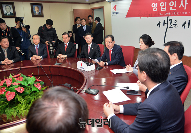 자유한국당이 9일 오전 서울 여의도 중앙당사에서 '영입인사 환영식'을 개최했다.