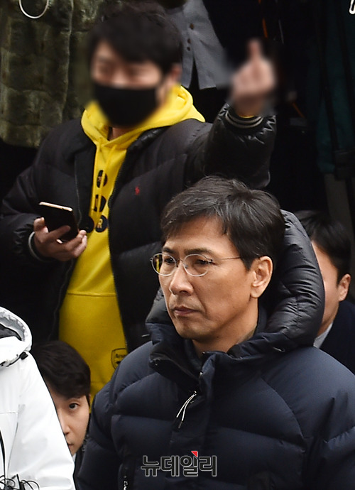 [포토] 안희정 검찰출석, 일부 시민 손가락 욕설로 항의
