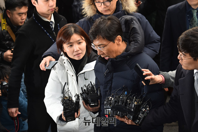 수행비서를 성폭행한 의혹을 받고 있는 안희정 전 충남지사가 9일 오후 서울 마포구 서부지검에 피의자 신분으로 자진출석하고 있다.