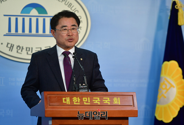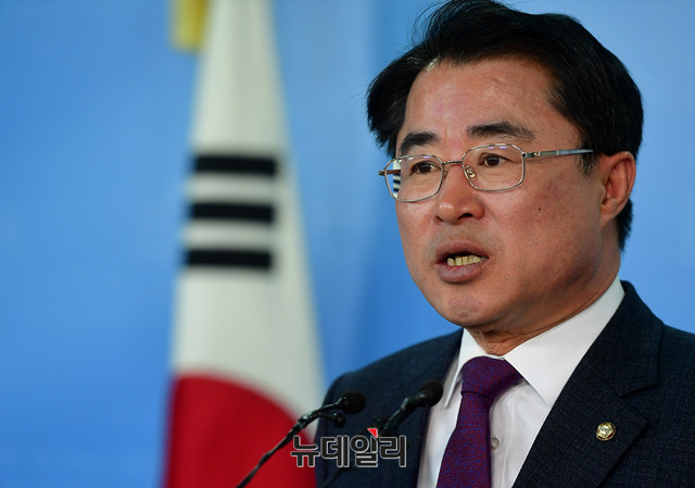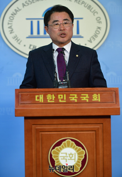 최경환 민주평화당 대변인이 13일 오후 국회 정론관에서 현안관련 브리핑을 하고 있다.