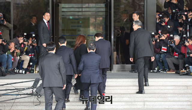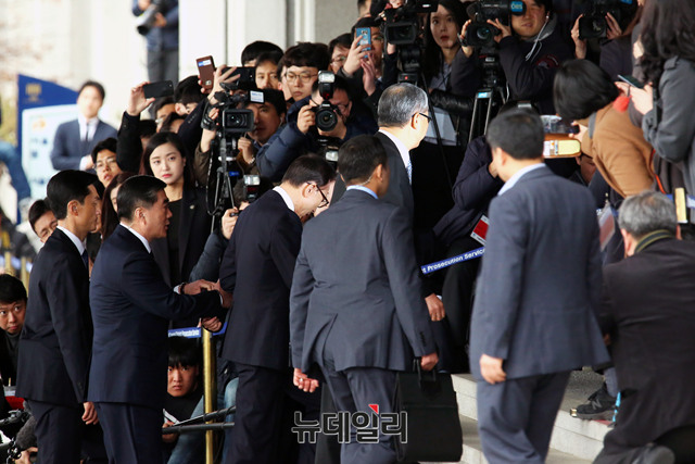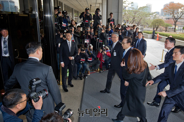 이명박 전 대통령이 14일 오전 피의자 신분으로 서울 서초구 서울중앙지검에 출석 하고 있다. 이 전 대통령은 뇌물수수, 횡령, 조세포탈 등 혐의를 받고 있다. (사진=사진공동취재단)