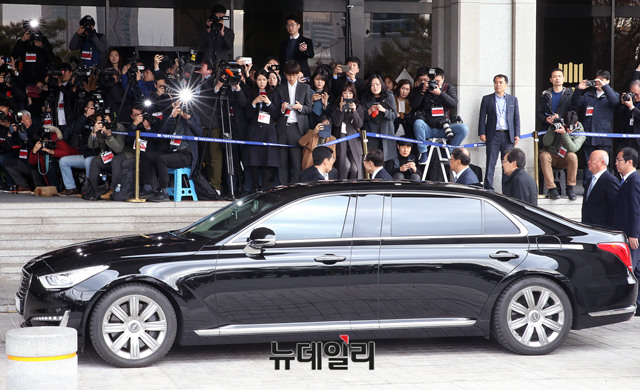 이명박 전 대통령이 14일 오전 피의자 신분으로 서울 서초구 서울중앙지검에 출석 하고 있다. 이 전 대통령은 뇌물수수, 횡령, 조세포탈 등 혐의를 받고 있다. (사진=사진공동취재단)
