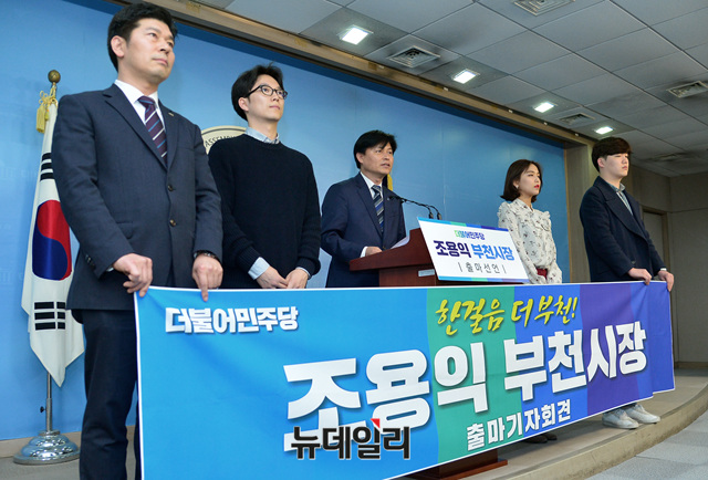 이날 조 전 의원은 자신이 "가짜뉴스와 싸우는 문재인 지킴이"라며 "부천시장 출마 역시 문재인 정부를 지키기 위한 출사표"라고 말했다.