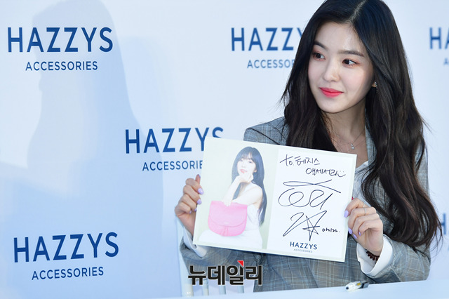 레드벨벳 아이린이 16일 오후 서울 송파구 롯데백화점 잠실점에서 열린 헤지스 액세서리 팬사인회에 참석해 포토타임을 갖고 있다.