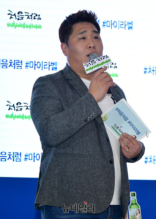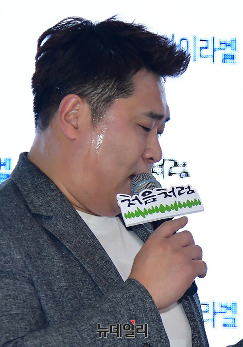 개그맨 문세윤이 17일 오후 서울 송파구 롯데월드몰 아트리움에서 열린 롯데주류 '처음처럼' 수지 팬사인회에 참석해 땀을 흘리며 사회를 보고 있다. 이날 팬사인회는 광고모델 수지가 참석해 근황토크와 사인회로 진행됐다.