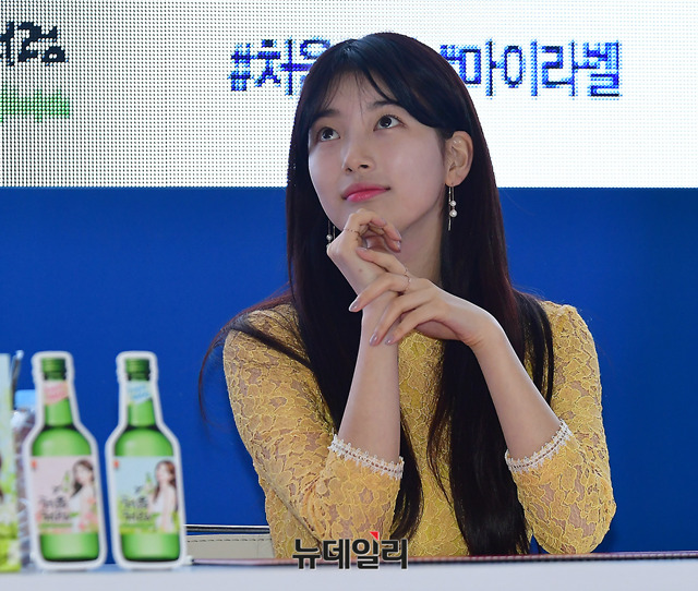 가수 수지가 17일 오후 서울 송파구 롯데월드몰 아트리움에서 롯데주류 '처음처럼' 팬사인회에 참석해 근황토크를 하고 있다. 이날 팬사인회는 개그맨 문세윤의 사회로 근황토크와 사인회로 진행됐다.