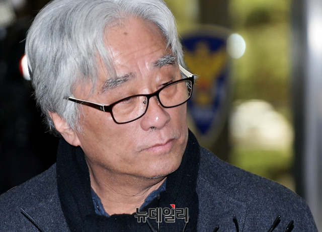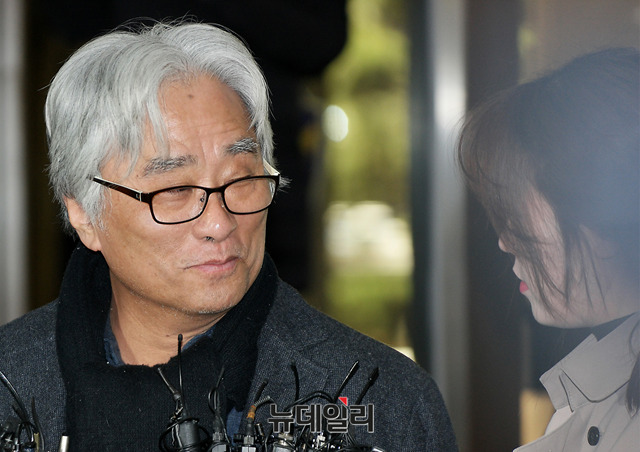 성폭력 혐의를 받고 있는 이윤택 전 연희단거리패 예술감독이 17일 오전 서울지방경찰청에서 조사를 받기 위해 출석하고 있다.