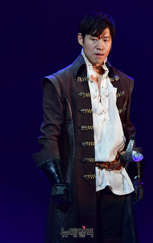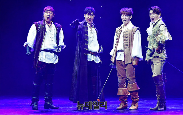 배우 유준상이 20일 오후 서울 서초구 한전아트센터에서 열린 뮤지컬 삼총사 프레스콜에서 하이라이트 장면을 시연하고 있다. 유준상은 삼총사의 리더 아토스 역을 맡았다.올해 10주년을 맞은 뮤지컬 '삼총사'는 알렉산드로 뒤마의 동명소설이 원작으로 17세기 프랑스 왕실 총사가 되기를 꿈꾸는 청년 달타냥과 전설적인 총사 아토스, 포르토스, 아라미스가 루이 13세를 둘러싼 음모를 밝혀내는 과정을 담았다. 오는 5월 27일까지 한전아트센터에서 공연된다.