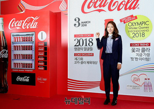 스피드스케이팅 이상화 선수가 21일 오전 서울 웨스틴조선호텔에서 열린 '제 23회 코카-콜라 체육대상'에서 포토타임을 갖고 있다.이번 시상식에서는 ▲ 최우수선수상 이승훈(스피드스케이팅), 윤성빈(스켈레톤) ▲ 우수선수상(비장애인부문) 최민정(쇼트트랙), 이상호(스노보드) ▲우수선수상(장애인부문) 신의현 (노르딕스키) ▲ 우수단체상봅슬레이 남자대표팀(원윤종, 서영우, 김동현, 전정린), 컬링 여자대표팀(김은정, 김영미, 김경애, 김선영, 김초희) ▲ 신인상 임효준(쇼트트랙), 안세현(수영) ▲우수지도자상 이용 한국 봅슬레이스켈레톤 대표팀총감독 ▲공로상 새라 머리 감독 및 아이스하키 여자대표팀 ▲특별상 이상화(스피드스케이팅) ▲클린스포츠상 쇼트트랙 여자대표팀(김아랑, 심석희, 최민정, 김예진, 이유빈) 등 총 9개 부문에서 상금과 상패가수여됐다.'코카-콜라 체육대상'은 1995년부터 대한민국 스포츠의 발전을 위해 기획한 아마추어 스포츠 시상식이다.
