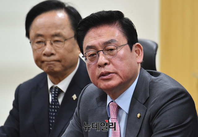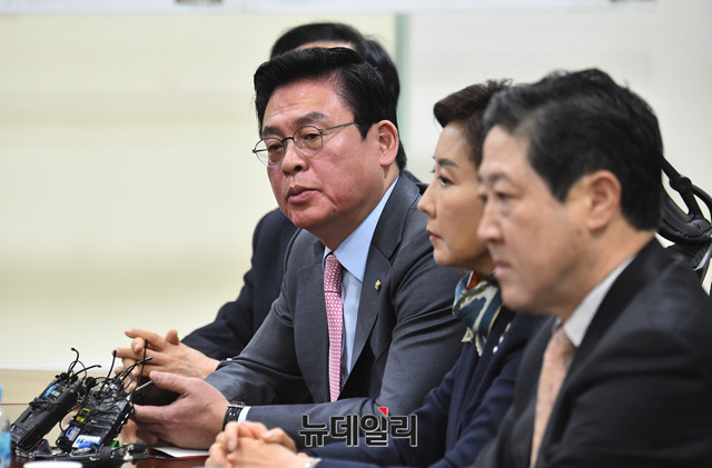 정우택 자유한국당 의원이 22일 오전 국회 의원회관에서 열린 중진의원 연석회의에서 발언하고 있다.