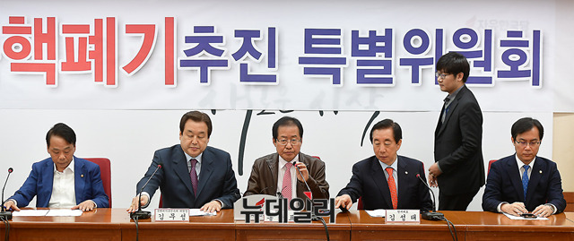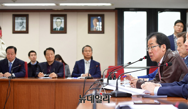 홍준표 자유한국당 대표가 22일 오전 서울 여의도당사에서 열린 북핵폐기추진 특별위원회 2차 전체회의에서 모두 발언을 하고 있다.