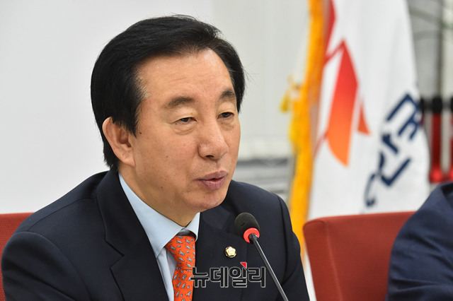 김성태 자유한국당 원내대표가 22일 오후 국회 당대표실에서 취임 100일 기자간담회를 갖고 있다.