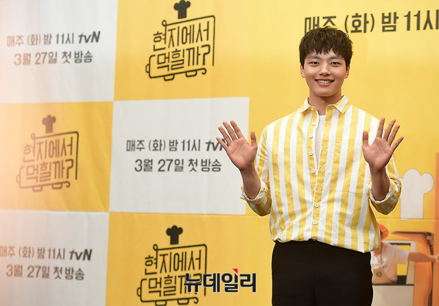 배우 여진구가 26일 오후 서울 마포구 상암 스탠포드호텔에서 열린 tvN '현지에서 먹힐까?(연출 이우형)' 제작보고회에 앞서 포토타임을 갖고 있다.