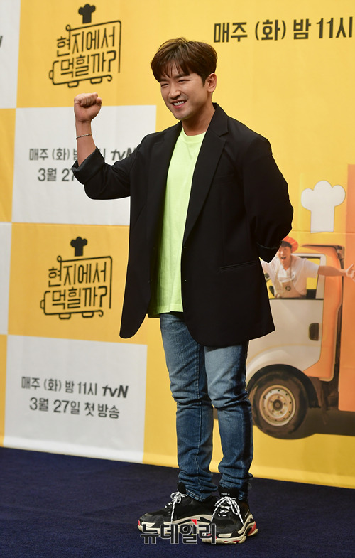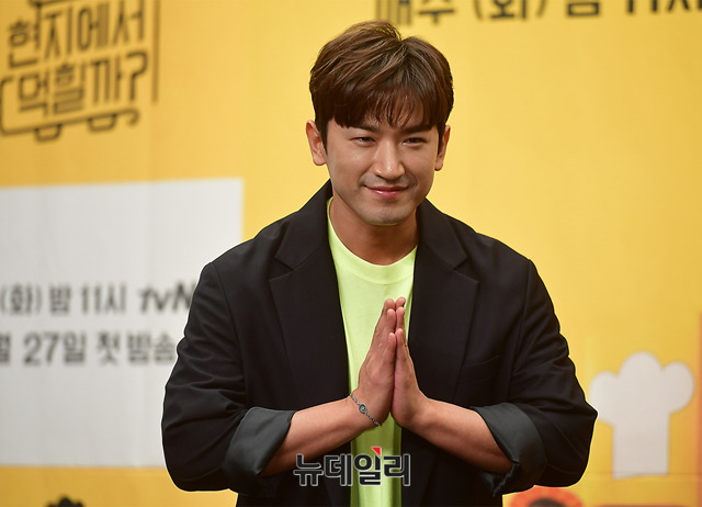 가수 이민우가 26일 오후 서울 마포구 상암 스탠포드호텔에서 열린 tvN '현지에서 먹힐까?(연출 이우형)' 제작보고회에 앞서 포토타임을 갖고 있다.