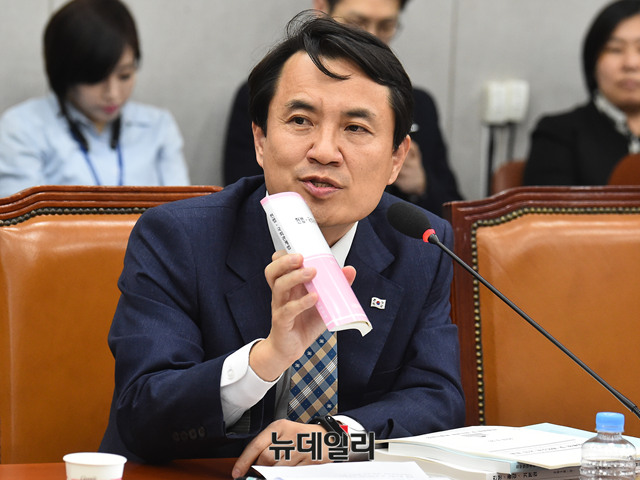 김진태 자유한국당 의원이 26일 오후 국회에서 열린 헌법개정 및 정치개혁 특별위원회 전체회의에서 의사진행 발언을 하고 있다.