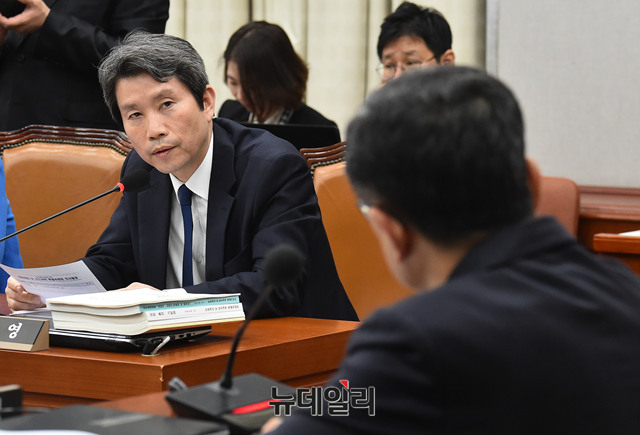 이인영 더불어민주당 의원이 26일 오후 국회에서 열린 헌법개정 및 정치개혁 특별위원회 전체회의에서 위원장의 모두발언에 대해 항의하고 있다.