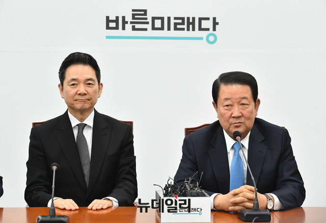 [포토] 장성민 전 의원 영입이유 설명하는 박주선 바른미래당 공동대표