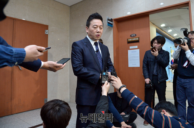 정봉주 전 통합민주당 의원이 27일 오전 국회 정론관에서 기자회견 후 질문에 답하고 있다.