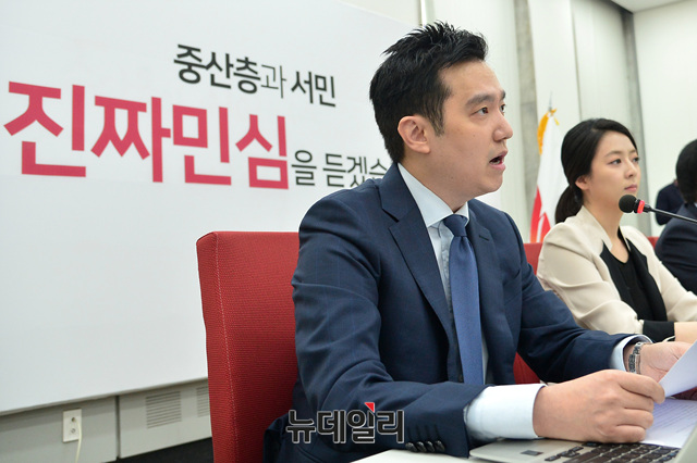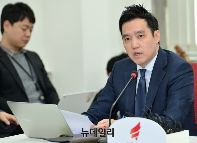 김세의 MBC 기자가 27일 오후 국회에서 열린 '좌파방송장악 피해자지원특별위원회' 첫 회의에 참석해 발언하고 있다.