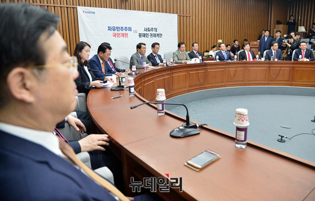 김성태 자유한국당 원내대표가 30일 오전 국회에서 원내대책회의를 주재하고 있다.