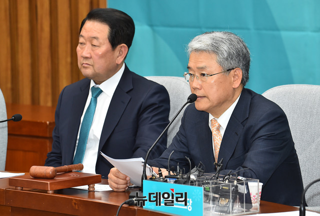 김동철 바른미래당 원내대표가 30일 오후 국회에서 열린 의원총회에서 모두발언을 하고 있다.
