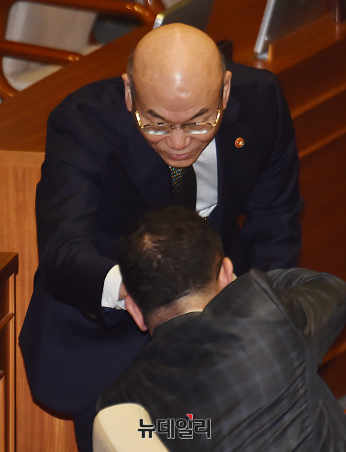 이효성 방송통신위원장 30일 오후 국회에서 열린 국회 본회의에 참석한 후 자리를 떠나고 있다.